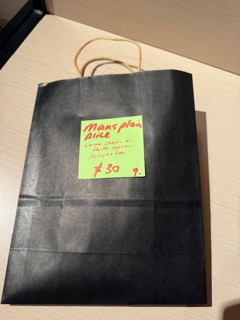 - Larger than standard size. Chef or arts apron.